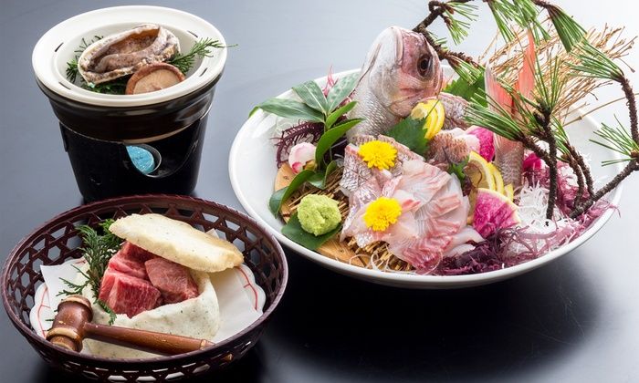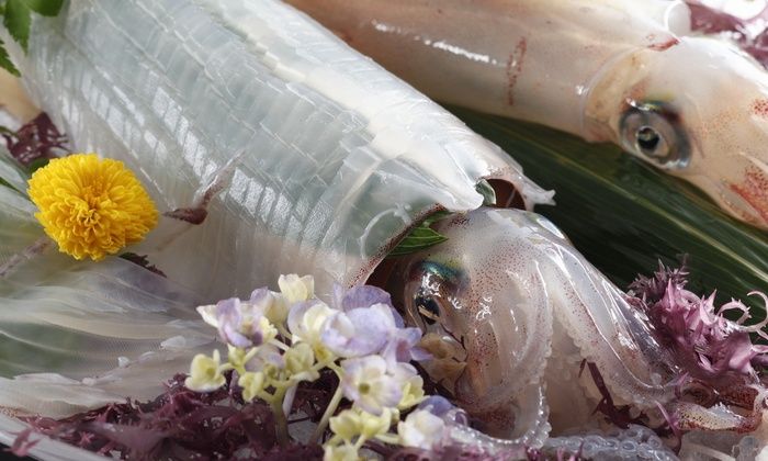 大人の休日。呼子活イカ&伊万里牛の贅を凝らした夕食。日本百景の美しい唐津湾を望む、景色・美食・癒しを一度に堪能≪呼子活イカ&伊万里牛の夕食/オーシャンビュー和室スーペリア/1泊2食≫ @唐津 網元の宿 汐湯凪の音
