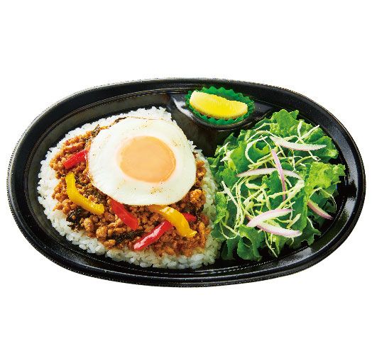原材料:米(国産)、たまごそぼろ、植物油脂、しょうゆ、ごま、ショートニング、蒸はくさい、野菜(チンゲン菜、にんじん)、豚肉、しょうゆ、植物油脂、たけのこ水煮、砂糖、乾しいたけ、果糖ぶどう糖液糖、みりん、ラード、ねりごま、食塩、チキンエキス調味料、和風だしの素、動物たん白加水分解物、オイスターソース、豆板醤、こしょう/増粘剤(加工でん粉)、調味料(アミノ酸等)、加工でん粉、乳化剤、酸味料、膨脹剤、クエン酸Na、(一部に小麦・卵・ごま・大豆・鶏肉・豚肉を含む)アレルギー情報:小麦・卵・ごま・大豆・鶏肉・豚肉