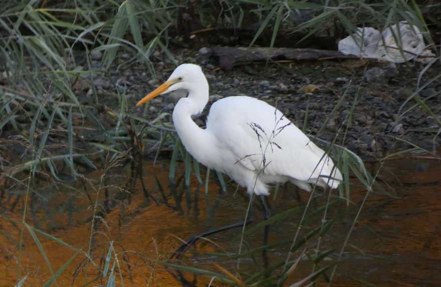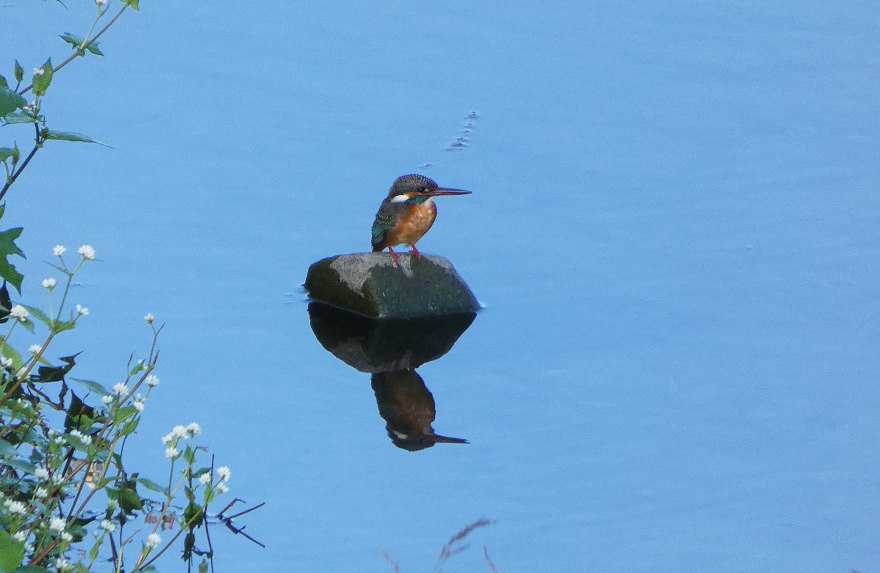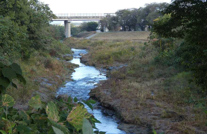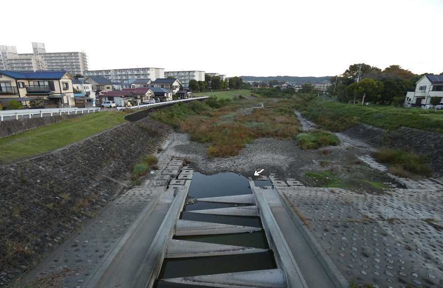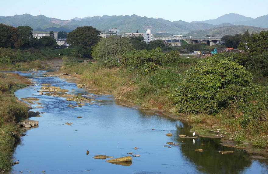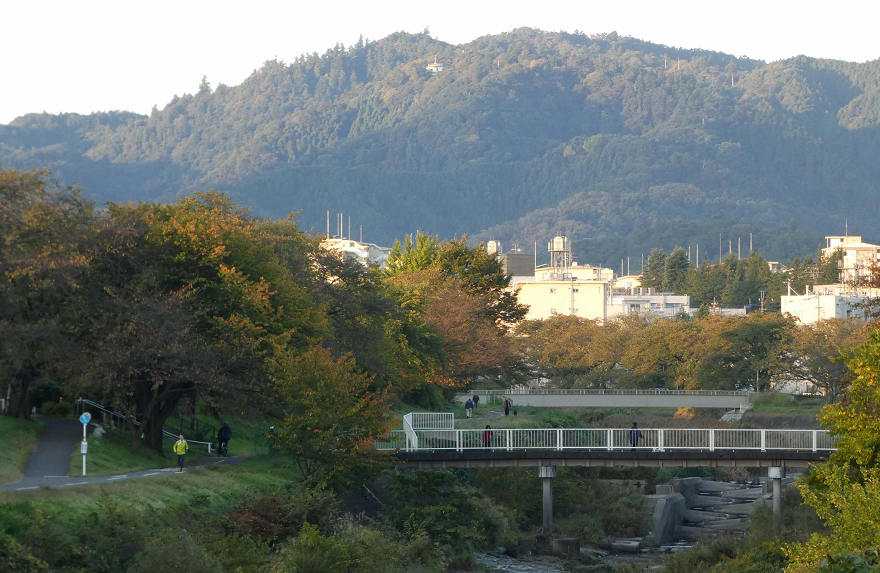 07:13、南浅川を下って来て市役所北側の鶴巻橋の真ん中で浅川上流側を眺める。