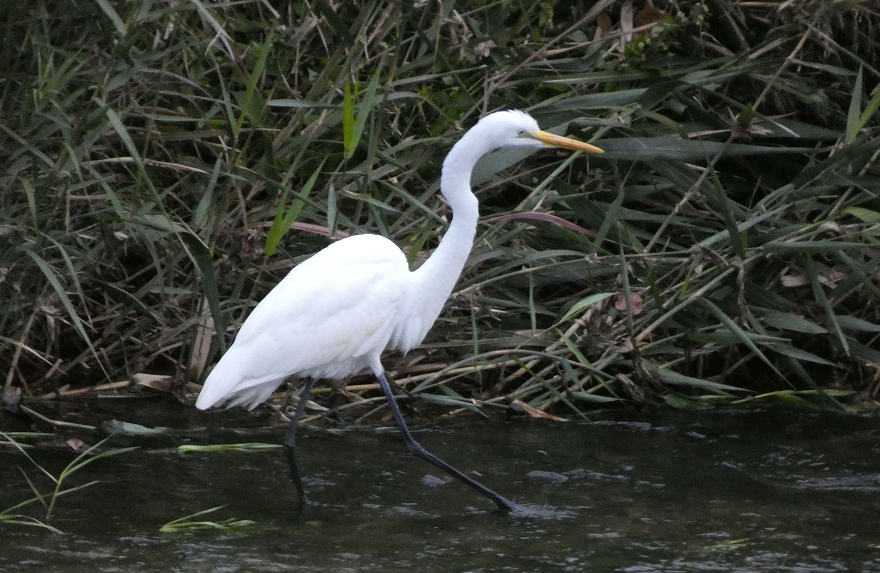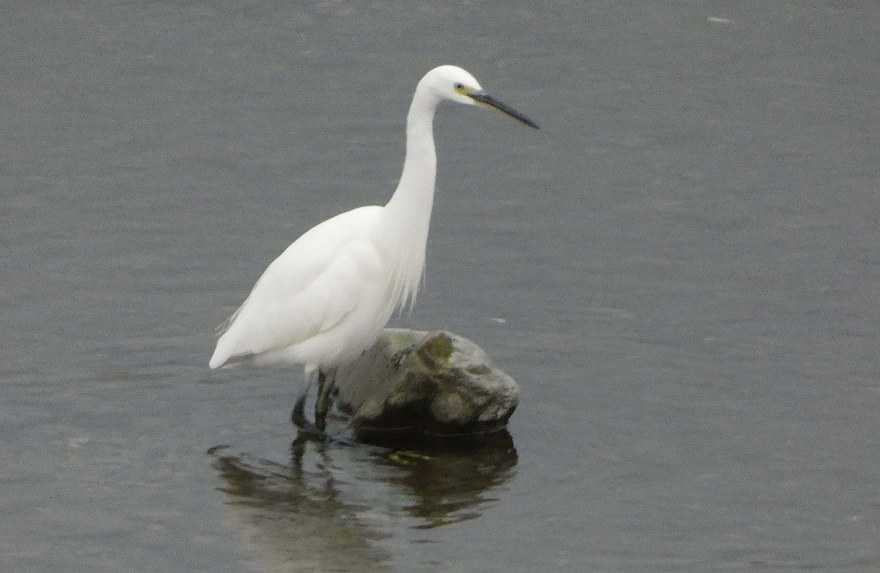 06:55、5つめの橋で折り返して下ってくるとダイサギ。