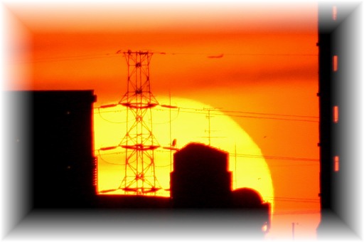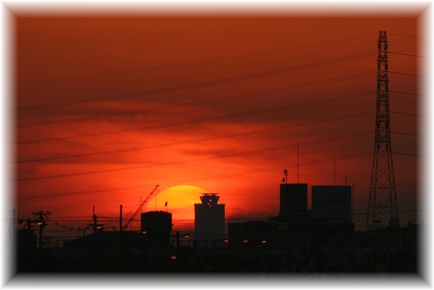 八尾空港09エンタ-夕陽 夕焼け小焼け♪風景...10日ほど前の夕刻、スーパーへの買物の前にたちよってみました、アヴォッチングは私ただ一人でした、訓練機はオスカーが2機 アーミーヘリパッドから27離陸したのみでした、誘導灯が点灯し真ん丸な夕陽がビルの谷間に落ちてゆきました、冷え込んできています高圧鉄塔先端の右、1時の方向にライン機が小さく霞んでみえています´▽`*)アハ10数秒の差、絶品の作品なんて時間は作らせてくれません...そのご何日も夕陽はみせてもらっていません、今日も今日とて予報が外れて冷たい雨がいまだ降り止みません