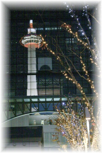 京都駅ビルは、東側にホテルグランヴィア京都、西側に百貨店のジェイアール京都伊勢丹が位置する。その間の中央コンコースは、4000枚のガラスを使用した正面と大屋根で覆う広々とした吹き抜け(横幅147m、奥行29m、高さ50m)になっている。吹き抜けの最上部には地上45mの空中径路が通っている。吹き抜けから東西へは渓谷状の階段が設けられている。伊勢丹側の大階段は段数171段、高低差は11階建てビルに相当する35m、全長70mある。大階段はコンサートや、毎年2月の「JR京都駅ビル大階段駆け上がり大会」(主催:KBS京都)などイベント会場としても利用されるほか、カップルや観光客の憩いの場ともなっている。 京都駅ビルに写る京都タワーアトムくんとタワー ガラスに映るクリスマスツリー、ツローシャッターで撮影してみました 吹き抜けの最上部には地上45mの空中径路の屋上部のガラス越しに...写るタワーと...下界には東寺の搭がダンダンと照らしだされてきていました