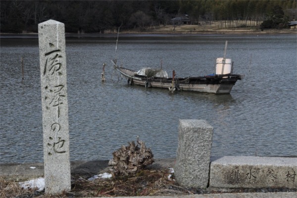大分県の「初沢の池」 や奈良市の 「猿沢の池」 とともに 日本三沢の一つといわれ 灌漑用の溜池として 往古より知られて いる、ひな(鄙)びた感じの大きな池、京都・北嵯峨野の広沢池この池は 周囲 約1.3km面積14万平方メートルだ...千代の古道(ふるみち)往古より知られて いる、ひな(鄙)びた感じの 大きな池へこの池は養魚池で晩秋には池あげして捕れたての川魚やエビが販売される当地ならではの風習なのです、私の育った昔、摂津、中河内の国も川魚の養魚の産地ですので、盛大だった頃が懐かしくおとずれました...鮒を竹の皮を敷いて、お茶で炊いて、後に甘露煮にしたものです、「ぶり大根」みたいに骨まで柔らかくなりカルシュウム源でした、専門の流通の川魚店が姿をけしましたので入手が難しくなり今では姿が消えた地元料理です...´▽`*)アハ