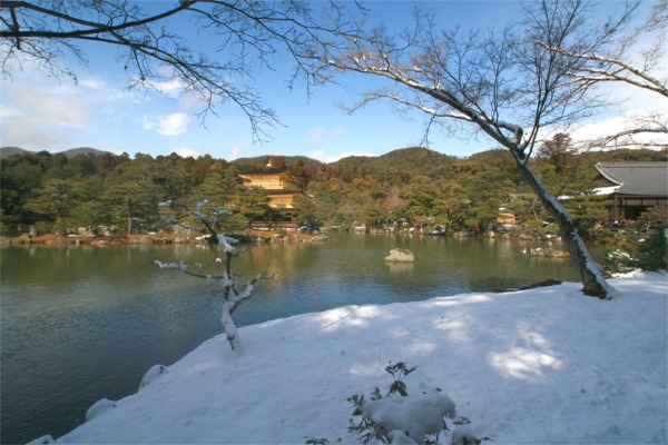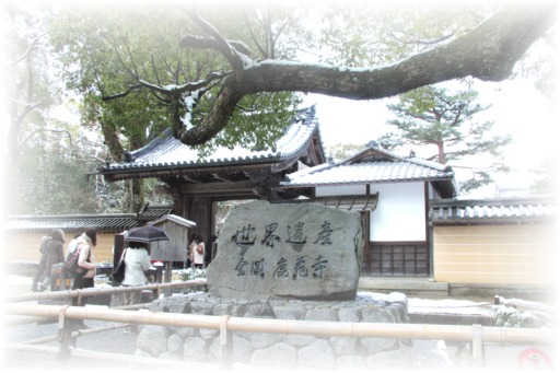 積雪5センチと微妙だけれど朝いちのニュースを聞きつけて身軽にカメラ提げて出かけてきましたが豪雪で鉄道のダイヤがみだれていたので金閣寺についたのは昼をすぎて雪はほとんど溶けていました...´▽`*)アハ 鹿苑寺(ろくおんじ)は、京都市北区にある臨済宗相国寺派の寺院。寺名は足利義満の法名に因む。通称金閣寺(きんかくじ)、山号は北山(ほくざん)。寺紋は五七桐[1]。室町時代前期の北山文化を代表する建築で、1994年(平成6年)に古都京都の文化財として世界遺産に登録された。中心となる建築物である舎利殿を「金閣」、寺院全体を「金閣寺」と通称する。