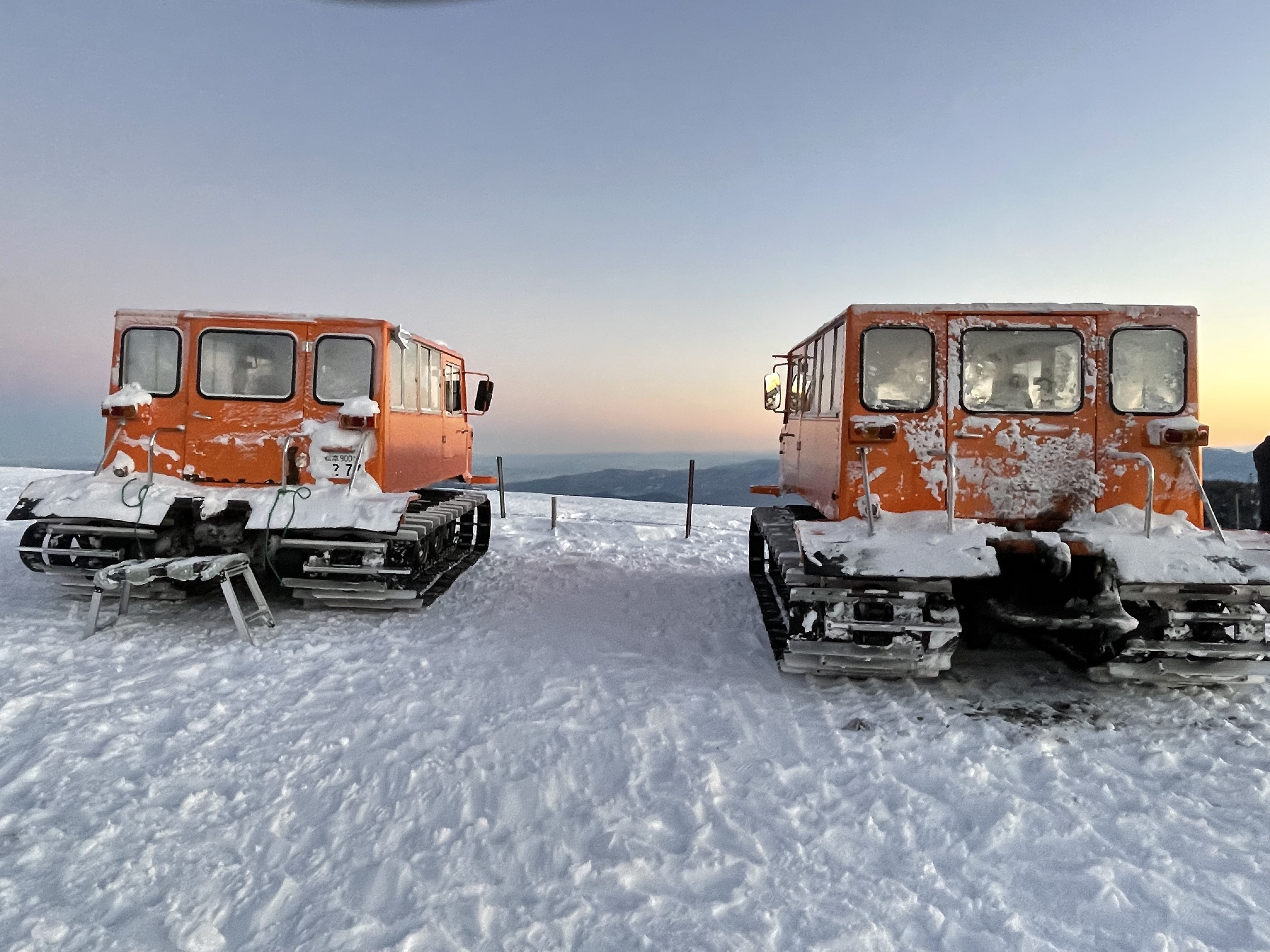 なんと雪上車で夕陽を見に連れて行ってくれると!