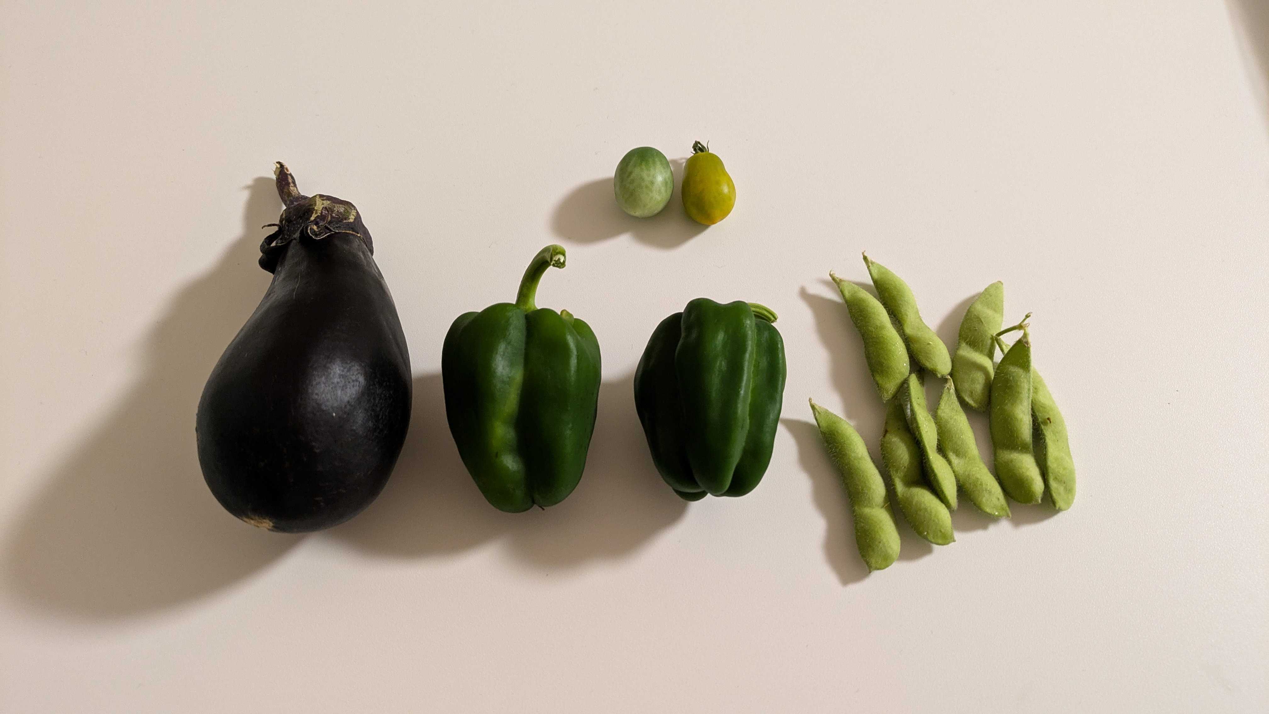 家で育てた野菜たち。昨年度は全然やらなかったけど、今年はまた頑張ろうと育ててた。昨日の夜、ステーキ焼いて食べたんだけど、焼いたあとの油で茄子とピーマンを焼いたよ。いい感じでステーキの脂と、ステーキに味つけした塩コショウが絡まって美味しく仕上がった。枝豆は湯を沸かして塩を入れて、2,3分茹でて食べたらちょうどいい塩加減で美味しかった。食べたものたちが自分で栽培したものってのがいいよね。