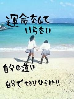 なんか早いけどなにげ復活してる餡菜です。コメントくれた人ありがとう。感謝だよね。ごめんなさいだよ(;´Д`A ```きっと大丈夫です!!!きっと昨日は嫌な事が続きまくってたんだよね。ストレス溜まってたし。まぁ一回沈むと、とことん沈むってコトが良く分かった。普段はまったく沈まないってことも。友達と愚痴ったりするのはいつもだけど。それに日記に書いたり友達に言ったりで、もぅ近いうちは昨日ぐらい沈む事はないと思います!!!それに、これからはもっと悪口増えたりするかも。でもそのほうが溜め込まないし。それにx2昨日みたいな文は友達に失礼だよねッ!!!仲間なんだから。うん。そんなぐずぐずしたって仕方ないよね!!!気の持ちよう。←コレ後輩にうちがいつも言う口癖。テンション高くしないと↑↑↑でも高くなりすぎて暴走すると危険なんだけどね・・・うちを知ってる人はそれを良く理解できてると思う。まぁうん!頑張ろう↑↑