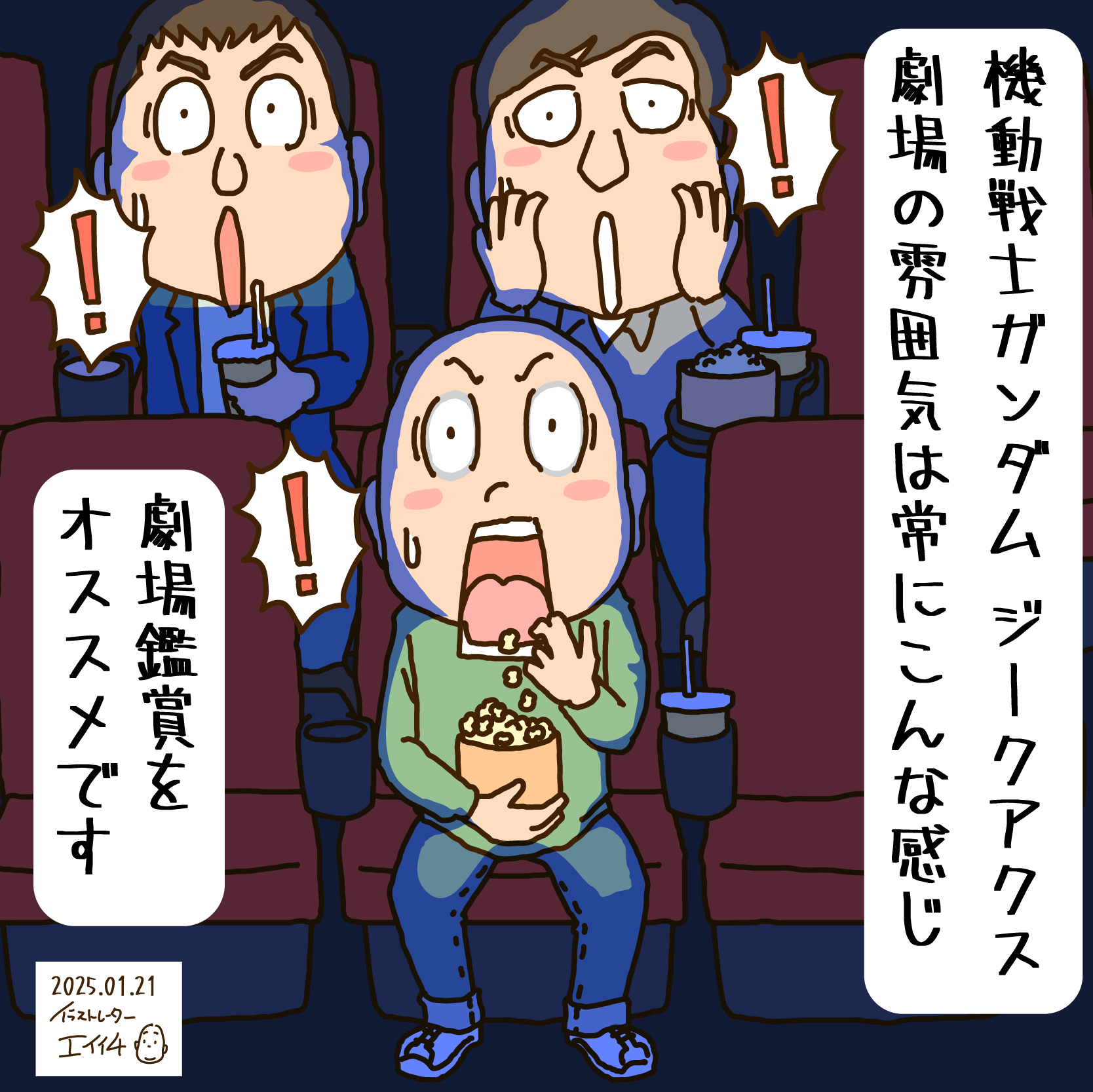 朝イチから観てきました。ネタバレ踏まずに劇場で観れて良かった!ガンダム好きな方、いち早く鑑賞することを薦めます!#GQuuuuuuX #ジークアクス #ジークアクス感想戦 お問い合わせはイラストレーターエイイチHP