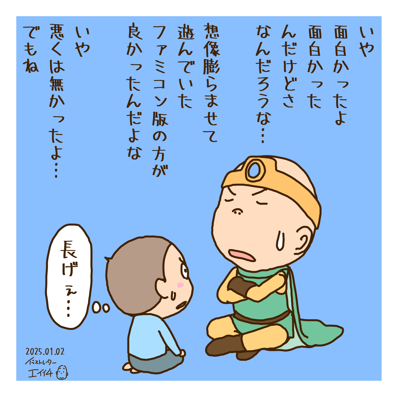 忙しくてなかなか出来なかったドラクエ3正月休みでやっとクリアーしたり家族で獅子舞に頭噛まれてきました〜今年もいい年になりそうですお問い合わせはイラストレーターエイイチHP
