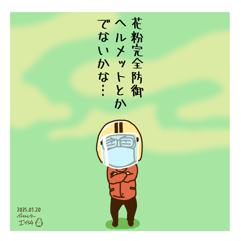統計開始以来最も早いスギ花粉の飛散開始前シーズンより「多い」予想も…とのことオシャレで変質者に見えない街歩きもできる花粉対策ヘルメットみたいのでないかな〜#花粉 #ゆるい絵 お問い合わせはエイイチHP企画構成・イラストを担当しました!大好評発売中!見えないボクと盲導犬アンジーの目も当てられない日々(小学館)ぜひぜひご覧ください!