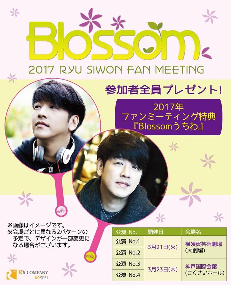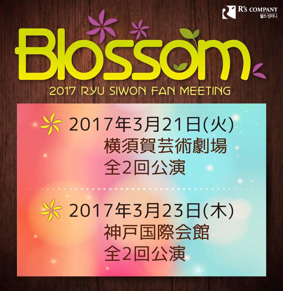 ファンの皆様、アンニョンハセヨ。この間、皆様に軽く話した2017年ファンミーティングについていよいよ公開致します!!一番、気になってることだと思いますが、★ファンミーティングのタイトル‼今回のファンミーティングのタイトルは「Blossom」です。 花が咲くという意味で、毎年、春シウォンとファンの皆様が一年の始まりを一緒に開ける、また新しい縁と思い出が咲くという意味を持っているタイトルです。 寒い冬を過ぎて花が咲く季節に皆様に会うことができてシウォンさんも私たちスタッフも幸せです。★ファンミーティングの日にちと場所は2017年3月21日(火)-横須賀芸術劇場 全2回公演2017年3月23日(木)-神戸国際会館 全2回公演 全4回、開催する予定です。次の会報誌が発送された後、2月13日(月)までです。ハガキ、ファックスを通じて今までと同じ方法でお申込みをいただく予定です。*上記の内容は、変更される場合がございますので、予めご了承お願い致します。ファンミーティングについての詳細は引き続き、お知らせする予定ですので、お楽しみにしてくださいね~添付したロゴが2017年「Blossom」の公式ロゴです。 皆様が気に入ってくださると嬉しいです。^υ^それでは、来年、花が咲く春、ファンミーティング「Blossom」で会いましょう!わ~い やっとファンミの日にちが決まった~やっぱ平日か~今度こそ参加するぞう~ブログ村参加中応援よろしくね今日もポチっとクリックお願いします♪