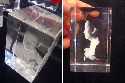クリスタルの中に自分の顔を3Dで掘り込むHPはココね自分の顔を3Dにするほど、ナルシストじゃないけど。人にあげるには、喜ばれるかも?しれませんね。むしろ人間よりペットの方がいいかもね。昔からあるようだけど、好きな絵を書き込めるのは無かったみたいです小さい物なら、4000円くらいだとか。どのくらい小さいのかなー、想像だとマージャンパイくらいかと思っていますドラゴンボールだ、しかもコンプリート願いが叶う?iPodにクリスタルオリジナルケータイに早変わり