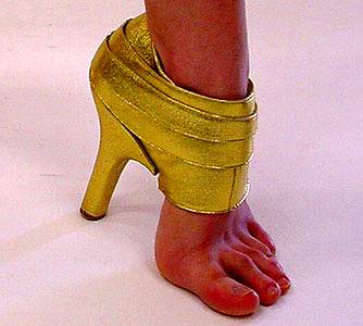 かかとだけハイヒール 『Golden Heel』全文はココね詳細は謎。とのこと。足痛いよ。それとも、裸足が普通の国の女性の洒落靴なのかな???ともあれ、ふしぎなハイヒールです