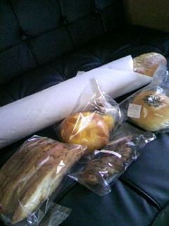 GUCHIPANに寄って、ラスクとバケットと練乳パン、黒ごま生クリームパンを買ったよ。
