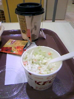 今日のお昼はケンタッキーでのランチタイムの仕事でした。なるべく量が少なめのセットmenuにしたかったので、オリジナルチキン1ピース、コールスロー、オレンジハーブティーを頼んだ。仕事とは言っても、20分以上も一人で座って食べなくてはならないのは、ちょっと苦痛。。。
