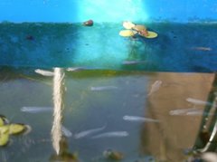 青メダカの水槽に植えてある(入ってるだけ?)のナガバオモダカに花が咲いてました。 今朝、メダカに餌あげたときにはまったく気がつかなかった。 しかもすでにちりかけ!? いつから咲いてたんだろう? 最近イヤなことがあったせいで、あんまり周りが見えてなかったのかなぁ? 良くないね… ちなみに、この水槽には青メダカ、タニシ、ミナミヌマエビ、いつの間にか入った貝が共存してます。 植物はナガバオモダカ、ヒメコウホネ、アマゾンフロッグピット。 暖かくなってメダカもエビもわ、ついでに貝も元気! メダカの食べ残しをエビが処理し、コケとかも貝やエビが活躍。 それらの糞で植物が育つという仕組み。 もちろんバランスよくいけばの話だけど… これから暖かくなるにつれ、ベランダもにぎやかになるかな? 嫁さんからは相変わらず不評ですが…
