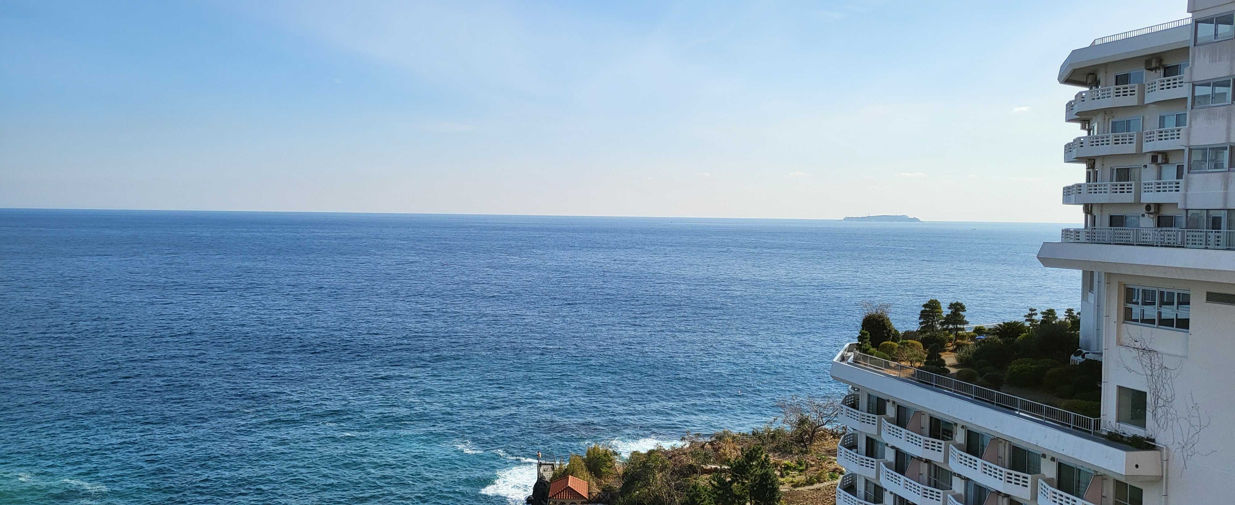 熱海の海岸沿いにあるオーシャンビューのマンションで、元ホテルだったマンションの1室を