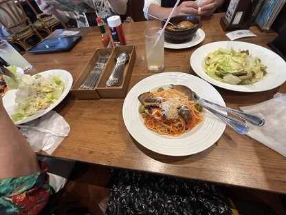 こんにちは~週末で~す先週末が3連休だったので、何かあっという間に週末ですね。昨日の面談は、応募した企業の担当者。恐らく頼まれたのかもしれませんね。だから採用はありません。仕事の内容から言えば、未経験でも良くて、若い子・・・自分で言うのもなんですが、スキルが上回ってて手持ちぶさになってしまうような仕事だと。仕事をガッチリやりたいわけじゃない。ただ、やって来た事を経歴に残せばそう言う事。その担当者さんは凄く良い人で、他に紹介したい企業もあるので、情報提供しても良いですかと言ってくれた。その話の中で、都内でまた働く事は考えて無いですか?と言われ、2拠点で生活するからにはそれなりの報酬は必要になる事は伝えた。この出会いも大事にします。仕事はし続けたいですから3連休最終日は、三男ボーとランチ合流日・月と朝食食べずに。リーズナブルにサイゼリヤでランチ単品で頼んで、これも食べたかった~三男ボーもパスタとドリアを注文。ドリンクバーも付けました2人合わせて2,050円安っ常に混んでるのが分かりますね敬老の日でもあったので、そんな家族の光景も目にしました。私にとって母の事はほんと悔やまれるけど、兎に角頑固なので、今では自業自得なのだと思うようにしてます。いつも1人で食べてるので、週末息子と色々店を探して選んで食べるのが楽しみになってます。息子も、「全然食べれなかった自分が、今は結構食べる様になったよな」と。数年前の出来事だったけど、もう随分前の事の様な。あの時は、こんな風に普通に外食を楽しむ事は考えられなかったけど、だからこそ今は大切な時間になってますね。今週末もどうかな~