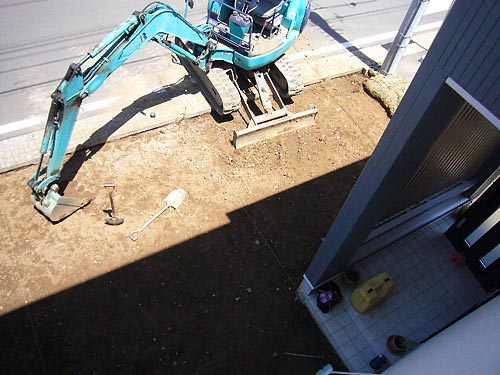 5月に入り、急に仕事が忙しくなりました。珍しく23時過ぎに帰る毎日です。とほほ・・・ストレス解消に(多分)役立っている音楽は、オーディオルームではなく、寝室に置いたeMacで聴く日々。大音量ですからね。こんなんなら、6C33Cヘッドホンアンプは寝室に持ってこようかしら? ホコリを避けるために、今はオーディオルームに置いてあるんですが・・・ さて、引っ越して4ヶ月になり、ようやっと駐車場工事が始まります。正直言って、家を建てている時は、外構に対してno ideaだったんです。買う車も決めてませんでしたし、駐車スペースさえあれば、あとは住んだ後にどうにでもなると。確かにそうなんですが、もう少し外構イメージを具体化しておいてもよかったと思ってます。というのも、雨水マス、汚水マス等の位置を指定しなかったために、建設会社が適当な(最も標準と思われる)位置に穴をポコポコ空けていったからです。埋めるわけにもいかず、この上に花壇を作ったりすることもできなくなり、デザインの縛りを受けてしまいました。まぁなんらかの制限がある方が、人間工夫するもんですが・・・家を建てる時に建設会社に外構も頼めば、こんな事にはならないんでしょうけどね。 泥はね解消のために駐車場に敷いた砕石は、家の東側(0.7m×8m分くらい)に移動しました。石を運び込んだ時に比べれば、こんな労働は軽いもの。ここも土がむき出しになっていたため、少しは格好が付いたかな?