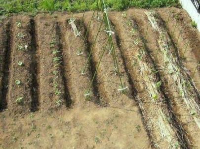一番花の咲いたナスやミニトマトに支柱を立てました。あと、ナスや地這いキュウリには敷きワラも。益々畑らしくなってきました 我が家の二階から菜園を見たところ。これで面積半分くらい。荒れ地からここまでで来れたことは、結構感慨深いです。ただ、元の土が硬いだけに、もうちょっと堆肥を多く撒いたほうがよかったかもなぁ。来年はそうしましょう。わき芽をつみ取ったり、早速やってきたアブラムシを退治したり、やることはいっぱいあります。だいたい休日はAM8時過ぎから家庭菜園でモゾモゾしていますので、開墾を始めた3月以降は極めて規則正しい生活です。雑草に関しては、当分これ以上抜かないことにしました。保水の意味でも、自然のバランスの意味でも、あまりやりすぎはよくないような気がします。葉っぱ類の種まきがまだできていません。もう少し暖かくなってからでもいいかな?