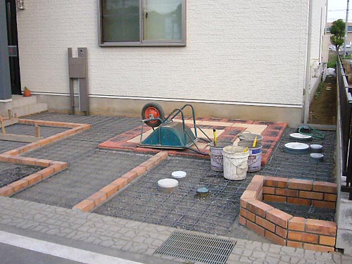 4月に入ってから、真剣に考え始めた駐車場のデザイン。やはり場所柄、車2台は停められるように、多少大きめの敷地割くことに。将来的には数台の自転車も置くでしょうから、そのスペースも確保しなければなりません。その懸案だった駐車場工事が、昨日から始まりました。 2日目朝はこんな感じ↓。職人さん2人で、1日で結構進むもんです。これなら確かにコンクリの乾燥期間を考えても、2週間で終わりそう。ご近所に、延々と駐車場工事をしているお宅があり、ちょっと覚悟していたんですけどね。この職人さんは手際がよさそうです。四角く囲われたところにはアクセント・パターンが入る予定住んでみてわかることは多々あります。例えばこの北側駐車場に、この時期でもPM14時以降ガンガンに日が当たること。土地の下見をずいぶんしたつもりだったんですけどね~。なぜそうなるかといえば、正確な方位が北ではなく北西だからですが、ここまで明るかったか!という感じ。光は差すまいと思っていた、北側部屋の窓から直射日光が差すとは・・・まぁ明るく暮らすという意味では良かったけど、駐車場に屋根をつけないので、車は熱くなっちゃうかも。