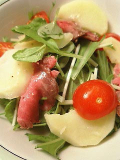 たわいもないサラダの写真。ただ、そこに見え隠れする、小さな葉っぱに意味があります。我が家の家庭菜園の初収穫品「小松菜」です。間引いただけとはいえ、完全無農薬だし、土地を耕し始めてから2ヶ月も経っているわけで、その思いを忘れぬよう、よくかみしめて食べています。この年になって、食育されるワタシ^^