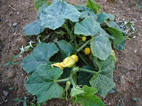 ほぼ一週間家を空けていたら、家庭菜園にも大きな変化がありました。えびすかぼちゃの葉が呆れるほど大きくなってました。貧弱な我が土地に合ったんでしょうか。摘心せずに、伸ばせるだけ伸ばしてみるつもり。 ものすごい強風の日があったらしい。小玉スイカが接いだところからポッキリ折れてました。しまったなぁ、旅立つ前に添え木をしておくんだった。 ミニトマトはどれも大きくなっています。おぉ、花も咲いているじゃないか。一部わき芽が育ちすぎて、どちらが主枝かわからなくなってますが、まぁいいや。 その隣のナス各種は育ちが悪いなぁ。テントウムシダマシに葉も盛大に食われています。生み付けられた卵は早速駆除。アルミテープを撒いているのでアブラムシは飛んできていませんが・・・燃料切れか? 液肥でも与えてみることにしましょう。 絶対に大丈夫だと思っていたトウガラシが2本とも立ち枯れに(TT) ピーマンの隣で、なぜトウガラシだけ??? とりあえず引き抜きました。週末に買い足します。 大レイシの若葉にアブラムシがたかっています。しかもモザイクに罹患したっぽい。速攻で引き抜きました。ゴーヤは丈夫というイメージでしたので、ちょっと意外。 地這いキュウリを二箇所に植えたら、同じ敷地内・同じ肥料なのに、育ち方が全く違います。こういうのが家庭菜園の面白さなんでしょうが。 小カブ、小松菜、つるなしインゲン、それにヒマワリがほぼ芽を出しました。間引いたので、結局ヒマワリは40本ほど。きれいなヒマワリにはものすごい期待しています。家の真ん前の畑だと、ベランダからでもその様子がよくわかりますね。いろいろと楽しみです。