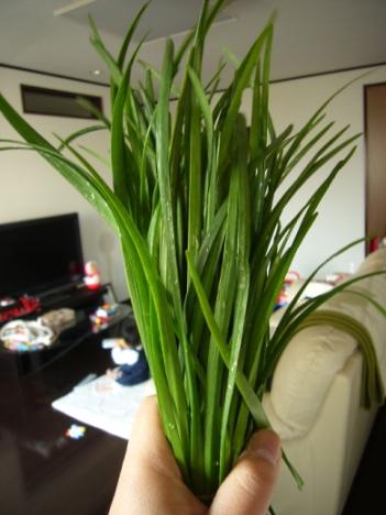 今年の家庭菜園の始動は早かった! けど、春先の季節風のあまりの強さにトーンダウンし、3月以降は畑を耕すのも2週に一回の有様。それに、トマトやキュウリといった夏野菜を植えるのは、GW明けにしようと決めました。その方が苗も出そろうし、ゆっくり耕せますもの。5月に入って、連作しないように作付けのローテーションを考えて、畑の掘り返しを(ジャガイモ以来)再度始めました。今日で2/3が終わったところ。冬から放っておいた野菜は、ブロッコリーは食べ残しのつぼみがきれいな花を咲かせ、アスパラガスは大きく育ち、まともに風害を受けたインゲンは細々と実を付け、ミョウガは芽を出し、ジャガイモ(男爵&メイクイーン)は青々と葉を茂らせ、葉タマネギも食べきれないほど大きくなり、種をまいたミニ大根&ホウレンソウも順調です。そんな中の一つ。昨年は植えたけどほとんど食べることができなかった「ニラ」を夕食分だけ収穫してみました。青臭いにおいは、いかにも栄養がありそう。もう少し待てばもっと大きくなるんでしょうけど、刈るほどに伸びるとも聞きますので、良い頃合いかと。肥料も何もやっていないのに大きく育つ楽な野菜です。伸びるのもずいぶん早そうですね。我が家では買わずに済む野菜の一つになりそうです。畑を見ると、ずいぶんと昨年収穫した野菜のこぼれ種が芽を出しています。一番芽が出ているのが青じそで、次がミニトマト(トマトかも)、あとはひまわり。種から育てるとその土地にあった野菜に育つといいますね。いくつかの苗は、このまま自然にまかせて、育ててみようかと思います。
