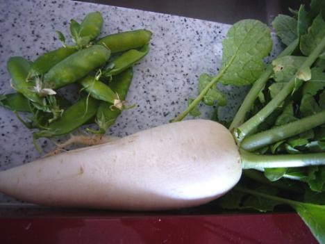 食べきりサイズの大根「ころ愛」の種をまいたのは2月だったか、3月だったか。そこそこ大きくなってきたので、試しに1本抜いてみました。長さは20cmほどなのでこの程度としても、順調ならばもう少し太って来るんでしょうねぇ。早速味噌汁に入れてみたところ、肉厚で甘みがある(辛みがない)。おいしいものです。なかなか大人2人だと大根半分も食べきれませんので、ミニ大根いいかもね。保存しすぎて水気が飛んだ大根はおいしくないでしょう?畑にはあと6本くらい植わっているかも。6月中旬から8月中旬の夏を除き、ほぼ周年で栽培可能のようですから、もう少し種をまいておくか。