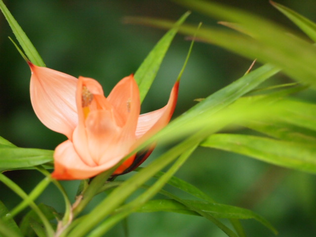 昨日からの雨があがり太陽も顔を出している最高気温は15度を予想・・春だね♪急いで洗濯機のボタンを押したお花は和名で ツルタコの木ジャングルで迷子になって、こんな花に出会ったらちょっとは安心すると思うでもオレンジ色の部分は花びらじゃないお花を守っているケープみたいなものなんだ