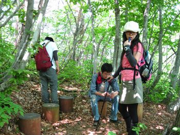 山を始めて丸二年。といっても、きちんと登れるようになったのはここ一年のこと。去年、嶽コースからの初岩木山登山では、大館モンベル会のみなさんとの出会いがあったり、初めて見た大雲海とか、360度パノラマ、すごいすごい、岩木山ってすごいなぁ、って思った、大好きな山。今年の岩木山一発目は、なぜか赤倉コースに決定。うちのベースのやっさんと、旦那のまあしーが、「6月中に岩木山に行こうよ」と約束していたらしい。赤倉といえば、去年のトワイライトハイク、……という名のビバーク訓練(涙)「もう、レベルアップするまでこの道には踏み込むまい」と、誓ったあの言葉を完全に忘れてました(涙)途中で心が折れました。ええ、完全に折れて、森に同化するところでした(まあしー談)シャリバテってやつを初めて経験したね。がしかしそこをなんとか、気力を振り絞って…登頂達成!!!帰りはまあしーに車を取りに行かせ、我々は一番らくちんな嶽コースから降りました。途中の八合目駐車場で飲んだ、アップルシャワーのなんとおいしかったこと。さすが果汁25パーセント(←無関係)今年も素敵な出会いがありました。秋田から来ていた単独行の女性です。私と同じぐらいフラフラになってましたが、なんとかみんなで山頂に立つことができて、ミチノクコザクラも見れて、きっと岩木山を好きになってくれていたらいいなぁ、と思います。ふるさとの山、岩木山。生まれ育った街からも、嫁ぎ先のこの街からも、毎日毎日いろんな表情の岩木山が見えます。きっと、私が岩木山を好きなのって、私に限らずなんだけど、津軽の人間のルーツみたいなものなんじゃないかなって思います。八月、岩木山山頂で、結婚します。