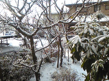 まあ、びっくりしましたよ。お天気続きだったのに、今朝雨戸を開けたら雪が積もっていました!天気は良くって朝日がキラキラ、昨夕はくもっておりましたが、まさか雪とはネ。雪が積もるとためらいのある剪定が良くわかります(笑)