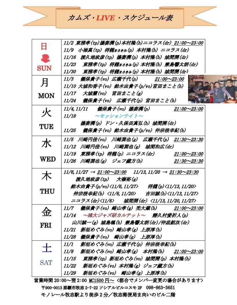 先週こちらに貼り付けた Kam’s House のスケジュールが10月のものだったので、11月分を貼らせていただきます。