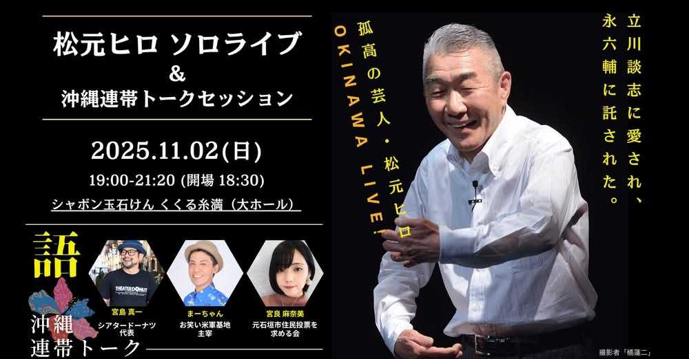 先日、糸満に松元ヒロがやって来ました。生で見るのは初めてでしたが、実に愉快なひと時を過ごさせていただきました。