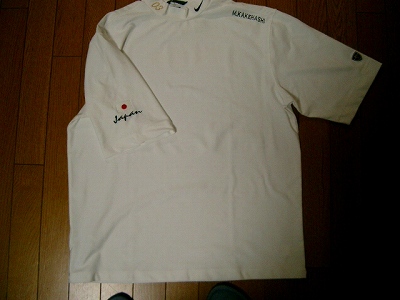 これがチームフルショットのユニフォームです。今日友人から受け取りました^^NIKEの半袖、今の季節だと重ね着ですね。この袖に注目です。どうやら日本代表のユニフォームをパクったみたいです(爆)左肩には名前の刺繍、首には会員番号の刺繍です。カッコイ~~!番号は単に年齢順、00からなので私はチーム内で4番目に老人と言うことです。でも03は好きな数字なのでよかったぁ~♪そしてドメインもHPもないのに背中にはこのURLが…。誰が考えたのか?こうなりゃドメイン取得してHP立ち上げるしかないかな??あと「絆」って文字が渋いね、誰か右翼でもいるのか??すそのひまわりは女性メンバーがいるからでしょうかでも親しい仲間でそろいのユニフォームはとても嬉しいですね。