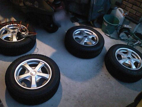 東京はまず雪は降りませんね。まぁ、降ったとしてもすぐになくなってしまいます。雪が降ればバイクはもちろんのこと、車で出かけなくて電車を利用すればいいだけですからね。ですから、スタッドレスタイヤの交換なんてしなくてもすむんです。が、今日、タイヤ交換しました。なんかねぇ、意味のない写真ですねぇ。ただ家の裏から持ってきたタイヤを置いてあるだけですからねぇ。取り替えてるところを撮りたかったんですが、作業を始めたら途中で止めるのが嫌になったんですね。こういう作業は一気にやらないと。ここ毎年、冬に交換して春にまた戻すという作業をしてるせいか、最初の頃と比べて、早くなりましたよ。作業によどみがない!!ボルトを緩める、ジャッキアップ、タイヤをはずす、スタッドレスをつける、ジャッキを下ろしボルト締め。まぁ、ざっとの流れはこうですが、これを4回やるわけですね。時間がかからないという事は、無駄なことをしてないし、余分な力も入れてないので、体も楽なんですね。腰も痛くなりませんでした。フフフ、これで雪道二遭遇してもあたふたしないでしょう。・・・でも、ウィンタースポーツとかしないから、雪道になかなか遭遇しないんだよなぁ。