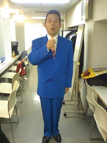 草月ホールで歌って来ましたよ。朝起きて心配だったのは、声が出るかどうかという事。恐る恐る出してみると、大丈夫でした。多少の嗄れ感はあるかもしれませんが、この程度なら問題なし。生姜コーラをポットに入れ、溶かしたプロポリスも持ち、稽古場に衣裳を取りに行って草月ホールへ。バイクを赤坂見附の駐輪場に置いたので、ちょっと歩きましたね。着くとこれから第二部のリハとかでジャストタイミング!!リハに間に合わない、同じくゲストの春風亭昇太さんの分まで唄っちゃいました。そしていよいよ本番。昇太さんも第二部の前に到着。で、僕は「そして神戸」昇太さんは「傷だらけのローラ」を。あとはさらば恋人、空に太陽がある限り、また逢う日までと続きました。楽器の演奏もいいけど、唄うのも楽しいですねぇ。出番前の楽屋で昇太さんに撮ってもらいました。