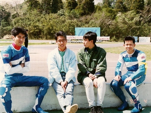 まだ風邪が抜けてませんねぇ・・・。昨日、あまり寝られなかったんですよ。寝る前に飲んだ生姜コーラのせいかな。コーラは寝る前はダメですね、僕には。寝不足ながら、「TOKYOほっと情報」で都庁へ。この番組は集中してブロック毎のセリフを覚えていくので、集中力が必要です。案の定、時々、カミカミオヤジになっちゃってました。・・・不甲斐ない・・・。まぁ、それでもいつものペース位では進行できたのでよかったぁ。優しいスタッフで、よかったぁ。帰宅して、29日のBS11「大人の自由時間」で使えそうな写真を選別。危険ですねぇ、こういう作業は。ついつい見入っちゃうんですよね。バイク関係の写真を選ぶので、関係ない写真は見なくてもいいのに、「ああ、あの時はこうだったなぁ」と思い出に耽ってしまいます。そんな中、19年前に行われた、島田紳助さん主催「芸能人ミニバイク大会」の写真を発見。選手は僕と、劇団の同期のたかはし、応援に大森とまいども来てくれました。その時の写真がこれ。ひゃ~~、みんな若い~~!僕はもう35歳になってましたね。たかはしが33歳、大森が26歳、まいどが24歳。基本的にはそんなに変わってないと思うんですけど・・・ねぇ・・・。