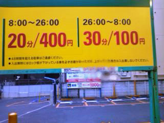 どうでしょう、この値段。都心の繁華街だと仕方ないんでしょうかねぇ。駅にもまぁ近いしなぁ・・・でもこりゃないよなぁ。この界隈だと、30分300円というところが多いかな。ビルの地下駐車場で30分300円、こちら屋根無しで20分400円・・・。まぁ、地主さんとすれば、土地代も高いでしょうから、これくらい取らないと割に合わないのかもしれませんが、なぁ~んか社会貢献してないって気もしますねぇ。まわりと比べてもバカ高ですもんね。最近、都心の繁華街では15分100円を見つけるのも大変になりました。駅からかなり離れるかしないとね。1日最高限度1500円とかあると嬉しいもんなぁ。車も大変だけど、バイク駐輪場も、もっと欲しいよなぁ。あ、なるべく安いタイプのものをね。