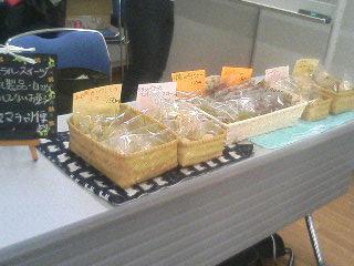 今日は朝作ったお菓子たちも合わせて127個もの数を携えていって参りました、大井町昨夜は予定分のお菓子は1時くらいに焼きあがったのですがラッピングしたり、メニュー表を準備したり、ディスプレーの準備をしたり、お釣り銭を入れる入れ物を探したりとこまごました用事を片付けていたらなんと午前3時さすがに40歳を過ぎてからは徹夜は身体に毒なので布団に入りましたが、なんだか寝付けず。朝は6時半に起きて、幼稚園のお弁当を作りながらスコーンを焼き、バス停まで小猿を送ってからまたスコーンを焼き、ヘロヘロになりながら大きな荷物を持って出発きゅりあんに到着後にメニューをコピーしにコンビニへドキドキしながら商品を陳列し始めました。前もって準備するのが苦手な私なのでその場で商品名を書いたPOPを用意し始める。結局全てが用意し終わったのは11時頃。10時35分くらいには開場したので、もうお客様のいらっしゃる中、黙々というわけにはいかないので「こんにちは~いらっしゃいませ~♪」とお声をかけながらテープを貼ったり、両面テープを貼ったり。で、こんな感じに仕上がりましたさてさて今日の売り上げですが、午前中とお昼はお隣のブースがおたふくソースさん。プチお好み焼きの試食会やアンケートに答えてお土産がもらえるので長蛇の列。その列に隠れてあまり見てもらえずお昼を過ぎた頃から焦り始めました。なんと20個も売れてないお昼を過ぎた頃にもっと中央寄りのブースが空いたので移動させてもらえました。今度の場所はFoodコーナーの最初の場所なので立ち寄ってくださるお客様が少しずつ増え始めました。14:30ころにようやく半分の商品が売れて。以降30分ごとに20個ずつ売れて。。。ついに、完売!と言いたいところですが、114個の商品が売れてくれました。残りの13個は個人的におすそ分けしたところがあり結局、全ての商品が私の元から巣立っていってくれました久しぶりの接客で頬の筋肉が少々痛いですがとっても大きな充実感でいっぱいですよくがんばったなぁ~自分と言う感じでしょうか(笑)なかでもブログいつも見ていたんです~と言ってくれたお客様がいらしてくれたこと!うれしかったなぁ~お近くにお住まいなのでご縁を感じます他にも今後の活動が広がりそうなご縁が結べました今日は本当にくたくたですが、気持ちは満たされています。そしてこの気持ちを大事にして家族や周りの友人、もちろんお客様へ循環していきたいと思います今日も1日、ありがとうございました。