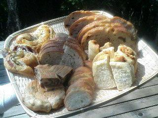 今日は美味しいものを呼び寄せるビーナスこと亜莉さんのパン教室第4期生の卒業制作発表でした。私は3期卒業生ですが、及第点スレスレの卒業だったので志願して4期も参加していました。その為、今日は自分の焼いたパンを持参なのですが・・・2月中旬から風邪と花粉症にやられて体調が不調でした。回復したと思えた頃、怒涛のように忙しくなり4期生第1回目の1月からパンを焼いたのは数回。しかもこの1ヶ月はまるっきり焼いてない・・・やば~い慌てて昨日の夜に1個。今日の朝1個焼こうと生地を仕込み、出来たのは結局1種類。この画像の中心よりやや左よりのが私が焼いたパンです。ものすごく扱いにくい生地だったのですが、思ったより綺麗に焼けてくれました。みなさんいろいろなアレンジをしたパンを焼いていらっしゃいました。こんなにたくさんの種類のパンを食べれるなんてとっても素敵~3食パンでもいける私なので本当に幸せでした。5月からは中級クラス。それまでに具材を混ぜ込むパンを焼けるようになるぞ~~~