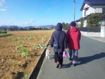 寒いけど、青空が広がる気持ち良い散歩道。 母S美 ・ 叔母Y美&あい 熟女スリーショットです(^○^) なんだか平和な後姿ですね~