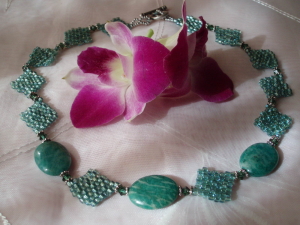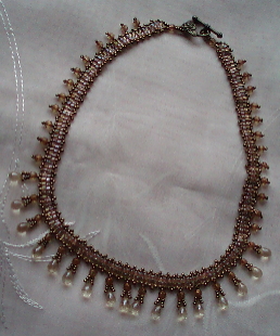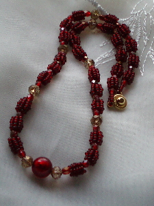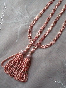 最近はお天気もと定まりなく師走に入り何かと気ぜわしい時期ですが私はと・・・言いますと・・・手抜き家事を行いを作ってビーズに没頭!!今回はキットでトゥりアンゴラーレネックレスを久し振りのテグスを使って仕上げました。編み方の復習に色違いの手持ちの材料で・・・すこ~し変更はネック部分をオリジナルに上手に出来上がりでしたら(パチパチ)ですねぇ。