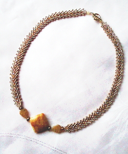 今日は朝から冷たい今朝は野鳥の珍客なし・・・今回もオフルームキットの中からイエロージェイド(斜スクエア)とチェコリーフ、ナゲットを使ったネックレスをサイズは少々長く約47cmしています。