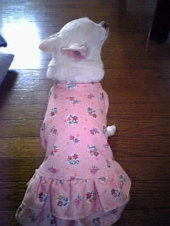 どぅですか!後姿も素敵でしょお行儀良く・・・スフレちゃん?ざぁ~~ねん!!スプレちゃんのワンピースを拝借したサラちゃ~んでした。かわいいサラちゃんとお父さんは申しております2月8日は15歳の誕生日を迎えます。。です。お父さんが超美味しいケーキを買ってくれるって~~♪まーちゃん頑張ってくれる!ケーキが大きくなるのですワン