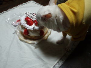 昨夜はサラちゃんの15歳のバースデー お父さんがを買って来てくれました。ちゃ~んと「サラちゃんお誕生日おめでとう」が付いていたよ!!此処のケーキ美味しいんだよ。フンフン~良い香りですワンサラちゃんが先に試食してからだよ~サラ・・・「う~ん 美味しいですワン」サラちゃんお誕生日おめでとうお父さんやかぁさんからのお願いだよスフレちゃんの分まで長生きしてねぇ。