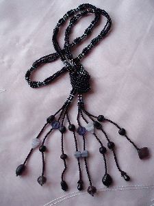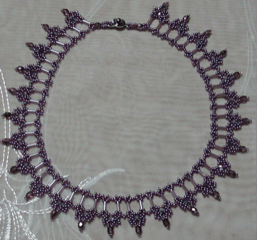 ビーズ手芸を初めてからまもなく十ヶ月近くになります。講習を受けるわけでもなく・・・自由気ままな独学 ^^;今回はオフキットに手を出して・・・針と糸でチクチク!!でも・・まぁ何とか形になりました。☆ ビューグルのレースネックレス ☆(アメジスト)難度は★★でした。全体の写真が鮮明ではないので部分的にアップで~~^^