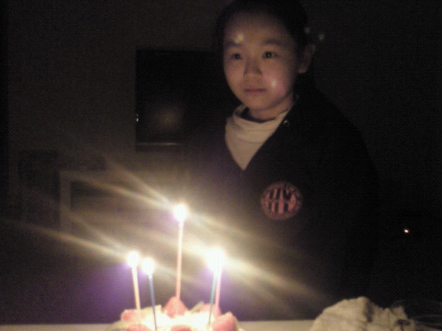 先日、紹介したちびの遅ればせながらお誕生日ケーキちと照れながら、最初は「そんなんいらん!」とか言いながらしっかりろうそくに火をともし写真も撮って・・・デジカメのバッテリーが切れていて携帯にてお姉さんになったとはいえ、まだまだ誕生ケーキは嬉しいようね親子団欒を楽しんだ休日でした
