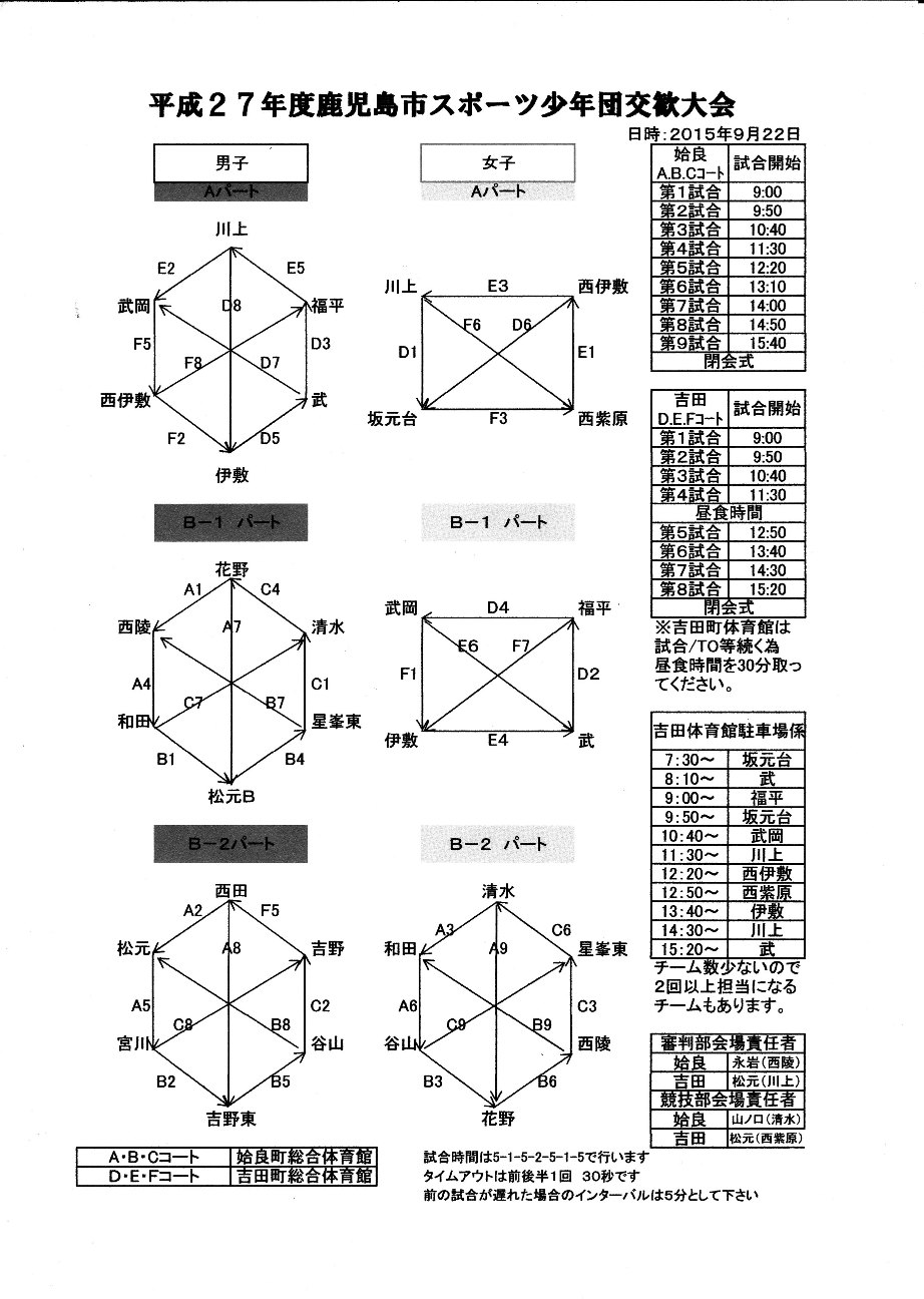 A’sの 男子・女子チームは 9月22日(火)の鹿児島市スポ少交歓大会に 参加します。 組み合わせをUPしておきます。 人気ブログランキングに 参加してみました。こちら を クリックしてみてね(^∀^)