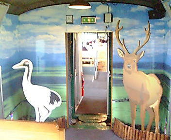 最後に画像のご紹介です。ノロッコの車内です。ジョイフルトレインらしく、ご当地系のデコレーションがふんだんにあるのです。